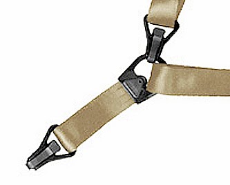 The original MS3 design showed up in the 2010 Magpul catalog with all new hardware and innovative solutions. One of those was eliminating the sewing operations used on the short strap by clamping the two ends of the webbing in the large connecting D-ring with two triangular MIM parts that can be seen in the photos above. With all the parts tooled up it was ready to go except for some last round testing, which did not go so well. Under a high impact load the webbing was pulling out of MIM parts. The same MS3 design appeared in the 2011 catalog as well with the expectations that the design could be fixed.